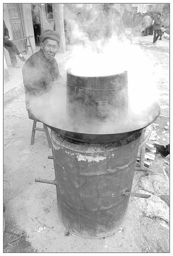 08. 2.19  象山冷水源  酒席中间 一个老者看护蒸米饭的火炉