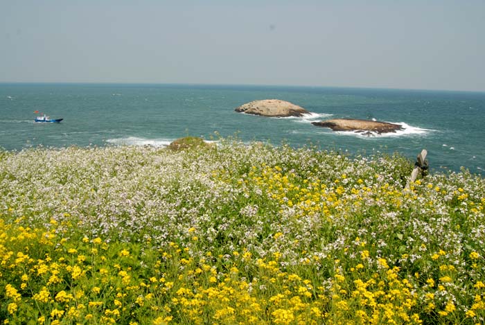 4月22-24日正是踏春的好时节.经不住美好春天的诱惑,于是约上几位摄友,坐船探访花海渔山岛.从象山石浦出发,朝东南方向航行大约25海里,便到达了象山最东南的岛屿,中国领海线基点所在——渔山列岛。渔山列岛有南渔山和北渔山之分,常说的渔山通指的是北渔山。宛如镇海之柱戳立万顷碧波之中,亦如在蔚蓝色的海天相托相护下的一块绝色翡翠。  渔山岛给人的第一印象便是清新的空气,令人心旷神怡。蔚蓝的天,湛蓝的海,把海岛掩映得更加美丽。