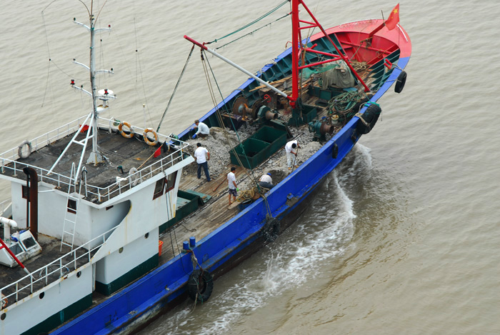 那好像是捕鱼后的下脚料(小鱼小虾),就怕到海洋里面去倒工业垃圾。