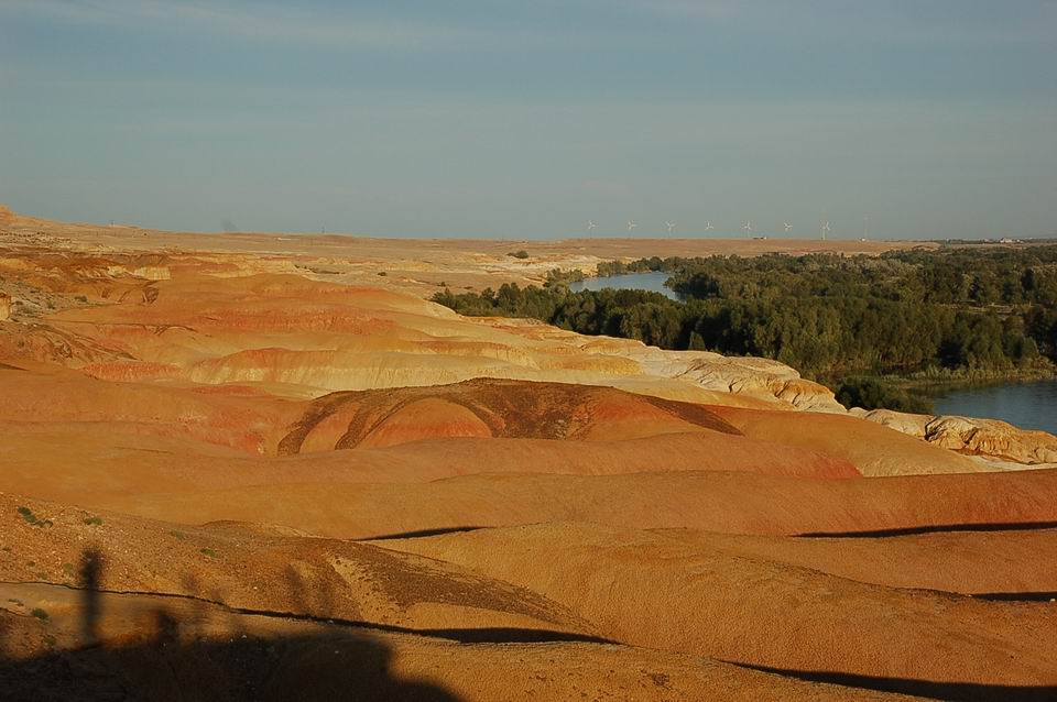 五彩滩还不错,在额尔齐斯河边,估计也是雅丹地貌,还有风车 |