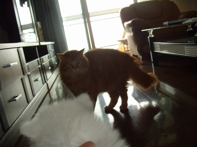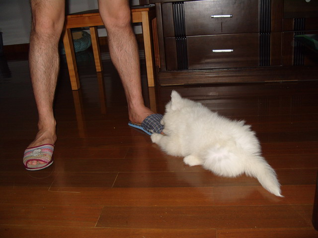 我的可怜肥猪呀,只从那天起BB一天一次改为二天一次,NN次数也减半。猫豆豆不再明显下降。周六那天晚上还绝食来着。还妖怪的很,飘小狗在的这几天使劲拍我马屁,细声细语的叫唤我,蹭我。这个妖怪及美好的形象只维持了一周不到,因为飘小狗回自已家了,肥猪又变回原样,没事又想来咬我。