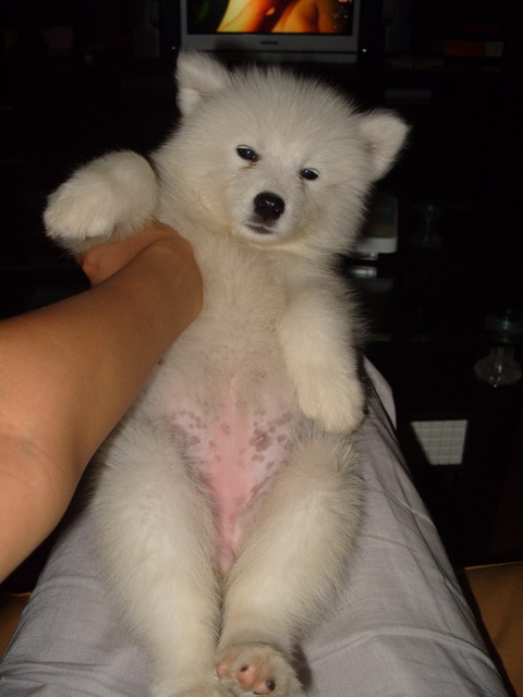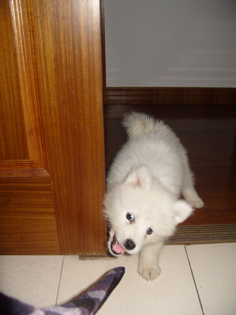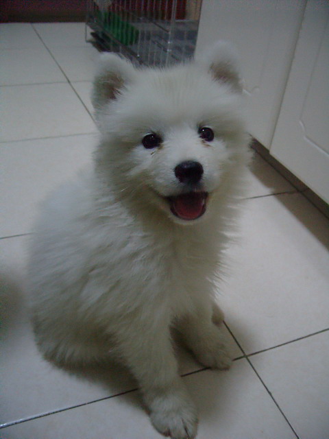 小客人:飘飘 体重:4-5斤左右 (肥猫体重14-15斤)。 年龄:59天的小幼犬。品种:萨摩耶,祖先来自雪山。