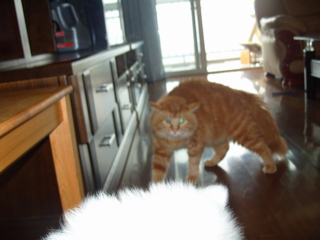 飘妹热情似火,只要见到猪哥,万分热情地扑上去。猪哥呢,惊慌失措,猫毛全体起立,在自己的呼哈呼哈叫战声中节节倒退。没的办法,我立即做出决定,必须隔离。俩小家伙不能同时出现在同一地点。