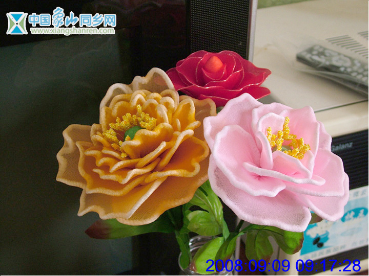 可她一定要我拍一张她亲手制作的娟花、美极了!