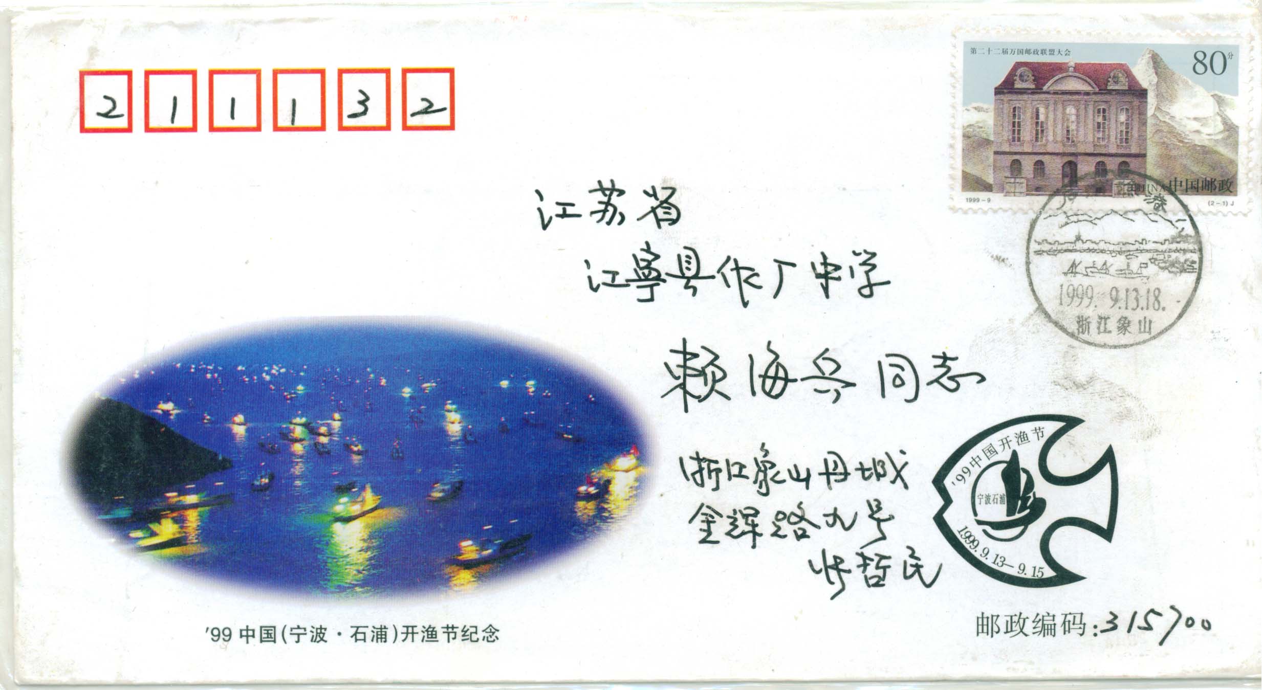 第十图是加盖风景邮戳后寄出的开渔节首日纪念封。