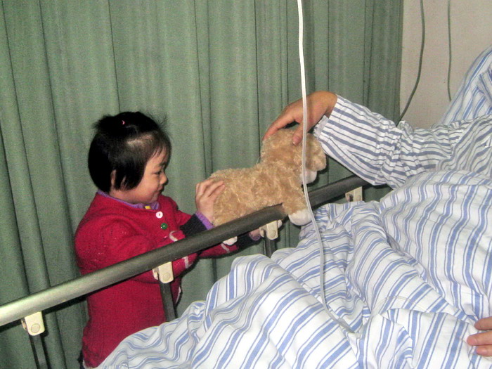 思颖:爸爸(嗯!)爷爷怎么两天不见了?(他生病住院啦。)