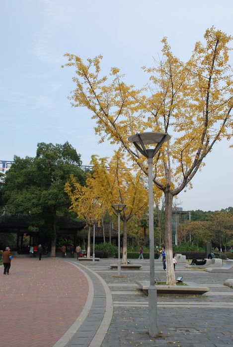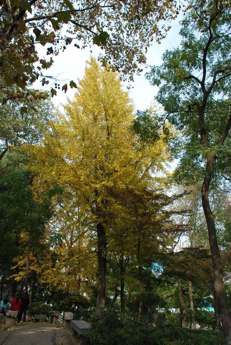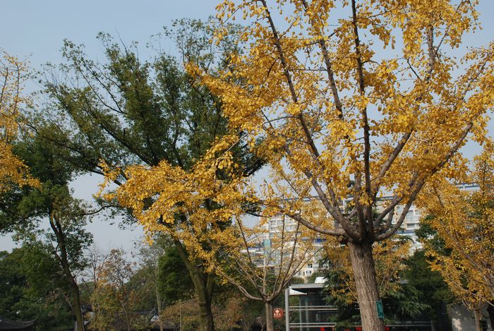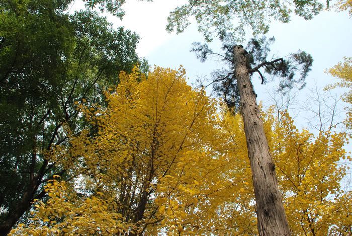 金黄的银杏能让人感觉到是秋,除此之外,绿荫茂密,几乎令人以为是到了春天。