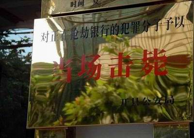 23?另一个经典的是上面写:“群众有困”下面是:“难找警察”。