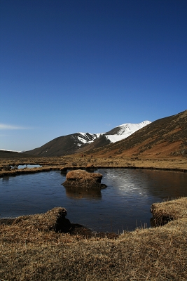 一个垭口下来所有的人都很疲惫,时不时的有人问"快到了吗?"为了打气永远都是那句"快到了快到了......"队伍渐渐拉开,我因为腰伤不能走太快只好压队.马队已经过去好久了,只能跟着前面的脚印走.8点多,我们终于到达了盘盘山营地.,海拔4200米.