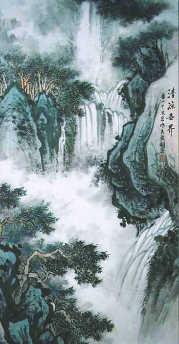 相对来说,女性画家一般以画花鸟、人物的为主,但杨老师却走的是山水一路。中国画虽然发端于人物画(宗教画),但自唐勃兴的山水画(文人画)则是更能够代表中国的传统精神,有“画中最妙言山水”之说。元四家、明四家、清四僧、四王,自元以降的大家几乎都以山水为主。