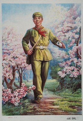 写词快手不负众望,果然按约定拿出了歌词。生茂拿到歌词,非常高兴,马上仔细研读起来,吃饭时两眼也没有离开歌词。他在想,这首歌一定要有普及性、群众性,部队战士能唱,地方群众也要能唱,绝对不能“洋”,必须是民族风格,而且气势要浩浩荡荡,高亢有力,有高潮。周恩来总理富有韵律的题词给生茂谱曲以极大的影响。“向雷锋同志学习爱憎分明的阶级立场,言行一致的革命精神,公而忘私的共产主义风格,奋不顾身的无产阶级斗志”。生茂觉得,总理的这寥寥数语,生动鲜明地刻画出了一个平凡而又伟大的形象,手握钢枪、巍然屹立的普通一兵雷锋同志分明就矗立在眼前。生茂仿佛和部队一起高唱进行曲走在大路上,情绪高涨,边谱边唱,不到一个小时就完成了。他怀着激动的心情,从头到尾又唱了两遍,觉得可以了,就赶紧叫一位歌队队员抄在食堂门前的黑板上,一是让吃完饭的歌队队员试唱,二是请大家赶快提提意见。大家唱了几遍感觉很好,都连声说“行,行!”就这样,一首宣传歌曲诞生了,歌名就取自歌词的头一句。
