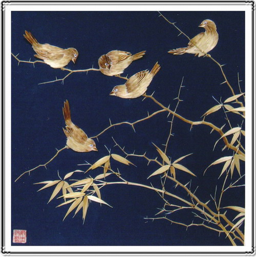 “徐派”麦秸画的魅力正在于它自然简洁的表现特质,以自然的物质直接表现自然的形态,从而浸透着一种返璞归真的天然真趣。(吴伟峰) |