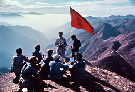 根据上饶红卫兵接待站提供的公路路线示意图,应该沿着公路经兴国、泰和上井冈山。但是,我们却走了一条示意图上没有的路线——经赣州、遂川,从井冈山“五大哨口”中最险峻的朱砂冲上山。