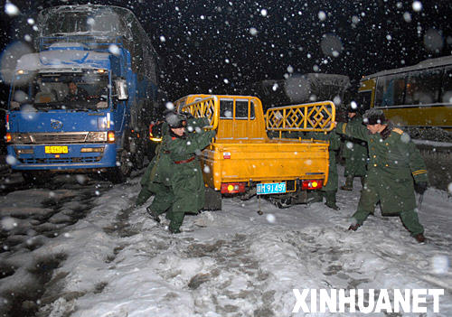 这是湖南宁乡县境内一片因冰冻不堪重负而折腰的竹林