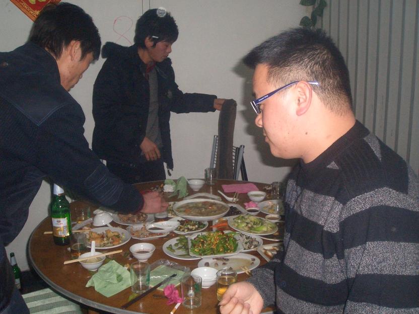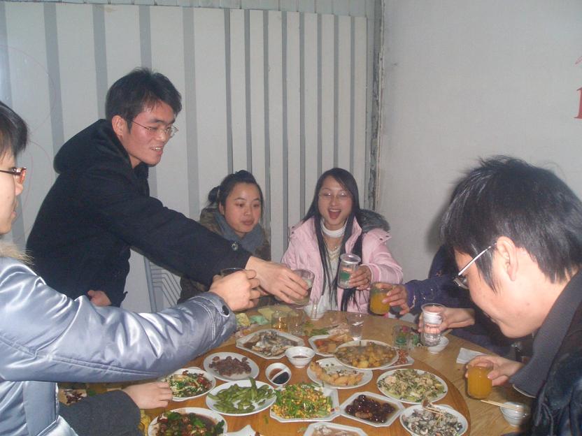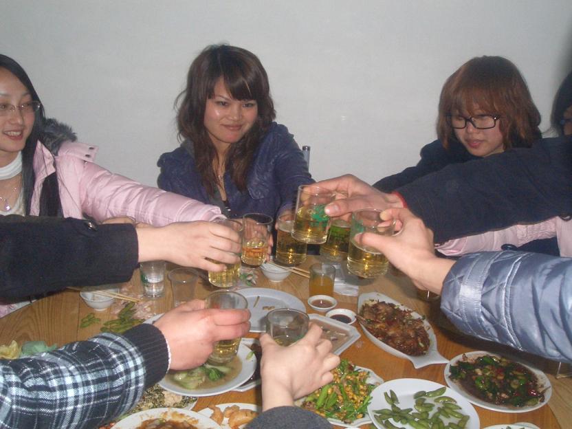 来,大家干一杯,祝大家新年快乐,酒喝多点