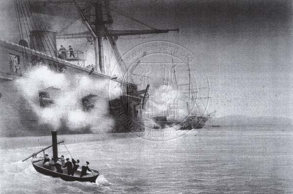 The Chinese naval defeats were serious in loss of life, but the ships lost here and at Foochow they were mostly obselete. The Chinese army in the meantime managed to stop the French and force a resolution to the colonial war, although France retained control of Indochina and China continued to be militarily ineffective. The once-mighty empire was still unable to prevent European "gunboat diplomacy" from mandating its policies, just as it had during the earlier Opium Wars and other incidents when British and French military power forced the Chinese to accept the operations of manipulative, ruthless and bigoted Christian missionaries and the importation of illegal drugs (imagine a drug-producing nation forcing the USA to accept cocaine shipments by force! And Al-Qaeda missionaries setting up propaganda-spewing "charities" to bribe or trick people into conversion in every town! Shows the value of never losing technological superiority over your nation's rivals). |