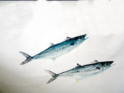 直接法是指将颜料直接涂抹在鱼身上,然后再用宣纸将颜色翻印下来,很类似于印刷的过程。把鱼平放案板或木板上,使鱼在拓印的过程中稳固。用清水和精盐将鱼表面的粘液洗净,清洗时注意不要让鳞片脱落。用纸或布吸去鱼表面多余的水分。把鱼摆成需要的姿势,用纸塞入鱼口中是鱼形挺括,并把鱼的鳍展开整理好。根据鱼身上的颜色调制不同浓淡或不同颜色的颜料,用刷子或毛笔在鱼身上的不同部位分别涂上不同的墨汁或颜料。把鱼移到干净的报纸上。