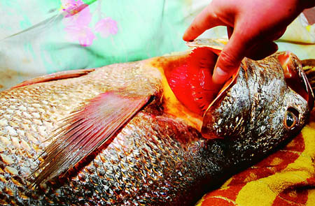 他和老沈马上谈到了鱼的鉴定问题。对方提出了一个办法:3月19日把鱼送到酒楼,现场请专家解剖鉴定,如果是黄唇鱼,酒楼出10万元收购;如果不是,酒楼出5万元收购。老沈很爽快地答应了。“他们是真的有诚意,如果这鱼仅仅是和黄唇鱼外形相近的毛常鱼,是值不了5万元的。”
