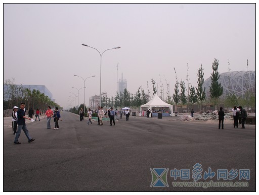 再往前走,走到主路上,左边水立方,右边鸟巢