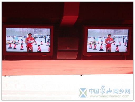 比赛运动员进入鸟巢外部,即将进入场馆里面的终点