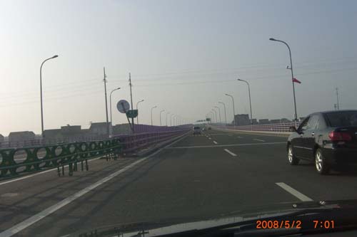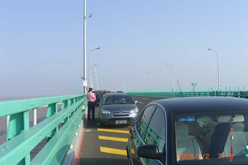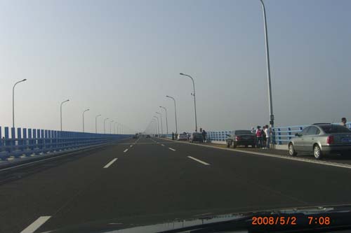 呵呵  没想到潘教授也违规了  在大桥上停车留影!!