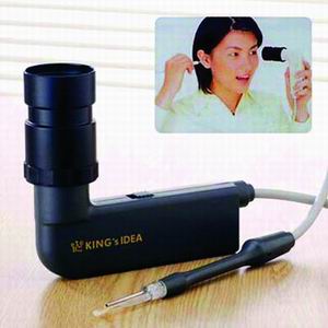 这可能是我们看到的最古怪的设备之一。它一端装有摄像头和灯,另一端是个视镜。使用这种设备,躲在耳朵后面和里面的耳垢便一目了然了。它使用单个9伏电池,由抗菌ASB树脂、玻璃和不锈钢构成。