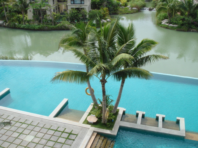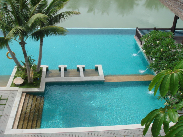 游泳池里的水确实很好,在里面游泳人不多,都去海边了