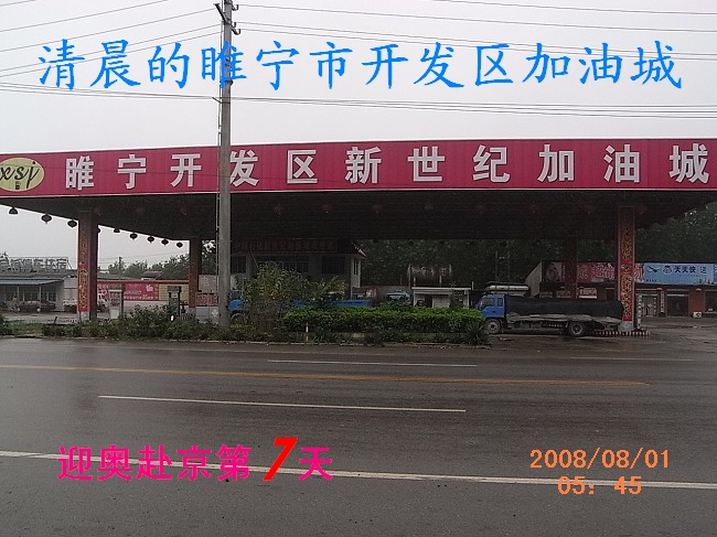 7月31日一早从滁州市出发,弯过来安县,转到104国道经过明光市,中午12点多到达五河市,这时已烈日炎炎,只得在五河市的皇都大酒店停车充电,休息到傍晚6点继续赶路。晚上8点半到达泗县,边吃饭边充电,一个多小时后又向前方进发。夜里12点多到达江苏省睢宁市,就在睢宁开发区新世纪加油城里充电并且休息了一晚。第二天是“八一建军节”,也是自己当兵40周年的建军节。上午8点多进入历史上被称为“兵家必争之地”的徐州市,心中有一份特殊的感受。徐州市建设得欣欣向荣,和平的年代是多么值得珍惜。 |