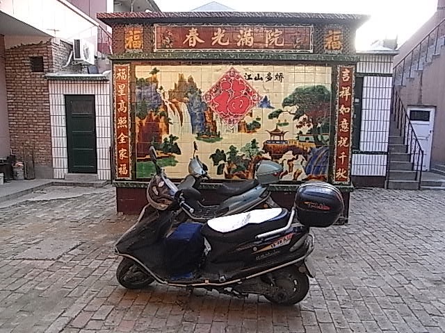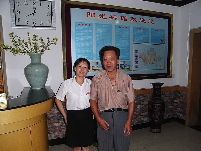 中午时分到达山东省高塘县,烈日下的路面烫得车胎又次爆胎,再次找到路边的修理铺修车。修车师傅一家子都很热情。