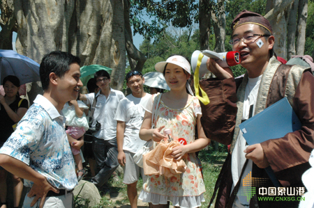 七夕来临之际,8月2日15对单身男女在象山影视城、中国渔村演绎了一场浪漫的游戏,掀起一场浪漫风暴。梁祝红娘团也第一次走出梁祝文化公园,为单身男女现场牵线搭桥。