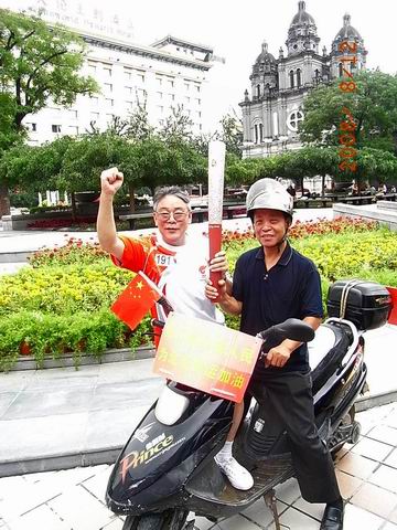 象山闲人吴根祥单骑电动车到北京为奥运加油,赢得我们热烈的掌声和支持。
