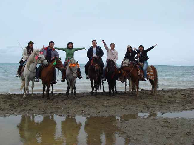 青海湖边骑马很便宜,10块钱能骑个小来回了,30块能骑半小时了,我估计马都是阉过的,所以性子不烈,藏民们也直接把缰绳给游客,让他们自己骑,所以很爽,我骑着马小跑了下,屁颠屁颠的!