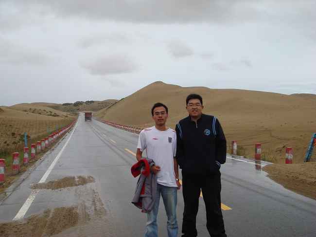 因为冷所以我们决定早点回,经过沙山和金银滩。沙山现在在治沙,所以路边都有围栏,不让人进,天气好的时候可以滑沙,可那天下雨所以没机会呢!在沙山行车,感觉是电影里的拉斯维加斯沙漠!壮观很!受附件限制,所以不上多的了。