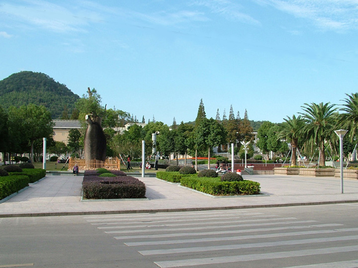 以前听说西湖好、一株楊柳一株桃、现在广场也有啊!