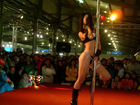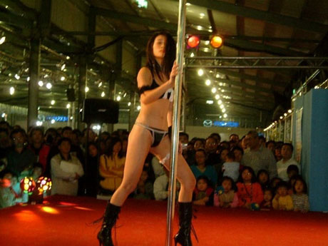 在采访中,一位月挣3000元、妩媚的钢管舞女郎告诉笔者,真正钢管女郎非一朝一夕就会成功的。必须付出巨大艰辛和努力。性感要从优雅开始,露出大腿,绑带马靴,就像芭蕾舞者套上舞鞋般,随着音乐开始,用两手抓着钢管做动作,让自己慢慢绕着钢管走动,把身体重量交付到钢管上。最精彩的舞技莫过于只用一条腿高高倒挂在钢管上作出很美丽的舞蹈。随后笔者观看了钢管舞的表演。舞女们是穿着类似三点式的服装出场,分别搂着台上四角的4根闪闪发亮的钢管跳舞,跳得很热辣、很野性,看得人们血脉贲张,观众席上顿时喧声四起。 |