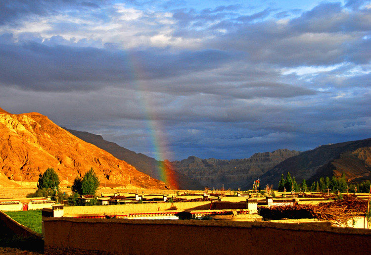 一个不知名的村庄,满目是晃眼的金黄,远处则雪山冷厉,