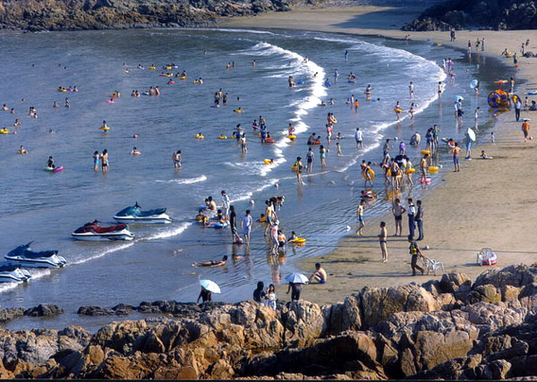 位于县城东南,距中心城区9公里,海湾面积25平方公里,是国家“AAAA”级滨海旅游度假区。14个岛屿错落有致,六大沙滩蜿蜒相连,属华东地区最大的陆岸沙滩。海湾辽阔,港湾、奇礁、岬角、沙滩、龙洞众多,野生动物丰富多彩。