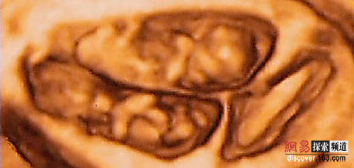 使用最新的4D超声波扫描技术对子宫进行拍摄得到的照片,可以看到双胞胎在子宫中的亲昵动作可能更加夸张和出格。