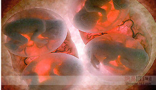 双胞胎中的一个亲吻另一个胎儿的脸颊,科学家们相信这样的关爱有助于胎儿的成长,同时也反映出在出生 ...
