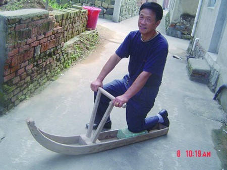 木制海马是我县渔民在千百年劳动中智慧的结晶,它的发明制作,饱含着物理学、工程学的有关知识,在我国渔业生产工具发展史上具有重要的地位。它的特点是:一.小巧轻盈,携带方便。长1.5m,宽20cm,一个人便可肩扛手提。二.结构简单,制作容易:1.截取一段弯杉树或楝树,角度大于100—150度,长度不少于1.5米,然后剖二块一公分宽度的板材;2.另截取一块宽20公分\长1.5米的平板;3.把二块同样弯度的木板按所需尺寸刨滑;4.把平板刨滑,经沸水烫,使它成为和上述二块板一样的弯度,再制一个20公分的木墩,打上二个眼子;5.装配,按上扶手。三.操作简单:一条腿在海马内,另一条腿代篙蹬泥涂便可快速前进。