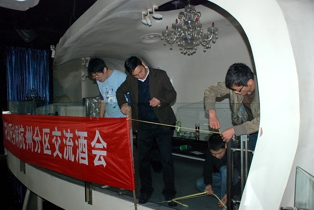 11月22号晚上6点到凌晨1点,杭州分区在摩秀演艺酒吧举行交流酒会,到会29人(包括后来来的朋友了),每人200元,大家一起喝酒,K歌,烧烤,气氛是相当地热烈。