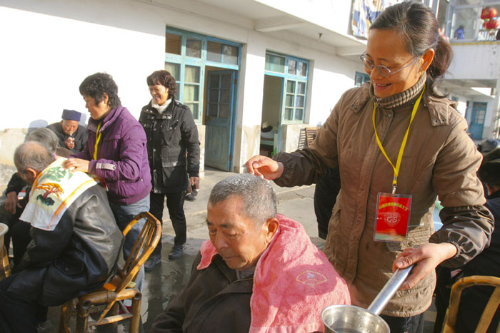 当日上午8点半左右,慈善义工队员就在敬老院里忙碌开来。扫院子的扫院子,擦玻璃的擦玻璃,洗被子的洗被子……大家就像自家过年掸尘扫房子,春意洋溢满院。“大爷,我帮你洗头吧!”一位孤寡老人顿觉意外,但眼睛当即亮了起来。他惊喜地说:“哦哟,闺女啊,你比亲生女儿还要贴心啊,我好久没有洗头了。”义工韩香女细心和气地为老人洗了头,还为老人小心地剪了指甲,老人开心不已。韩香女是低保户,自己身体不好又没有工作。但当她听说街道慈善分会组织做义工活动,她一口答应一定要参加。她说:“这样的义工活动只要有,我都会参加,因为很有意义啊!”韩香女还说,下次她要买一套理发工具,为老人和需要帮助的人义务服务。