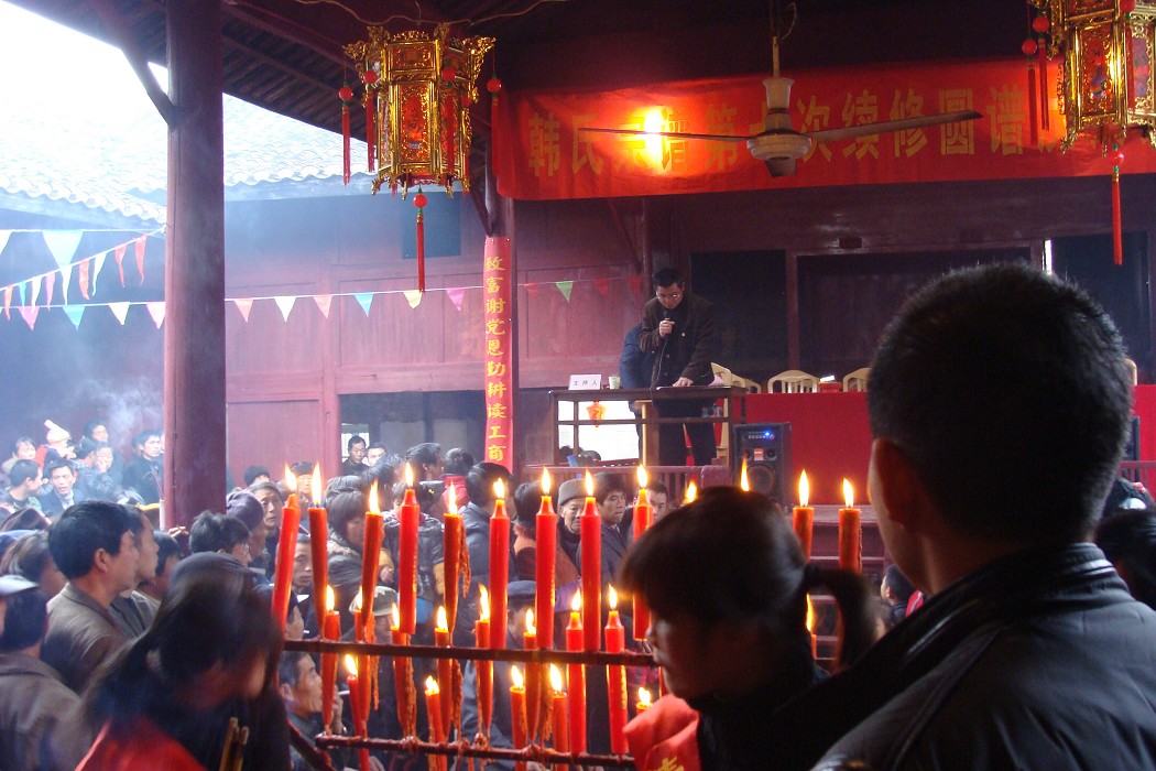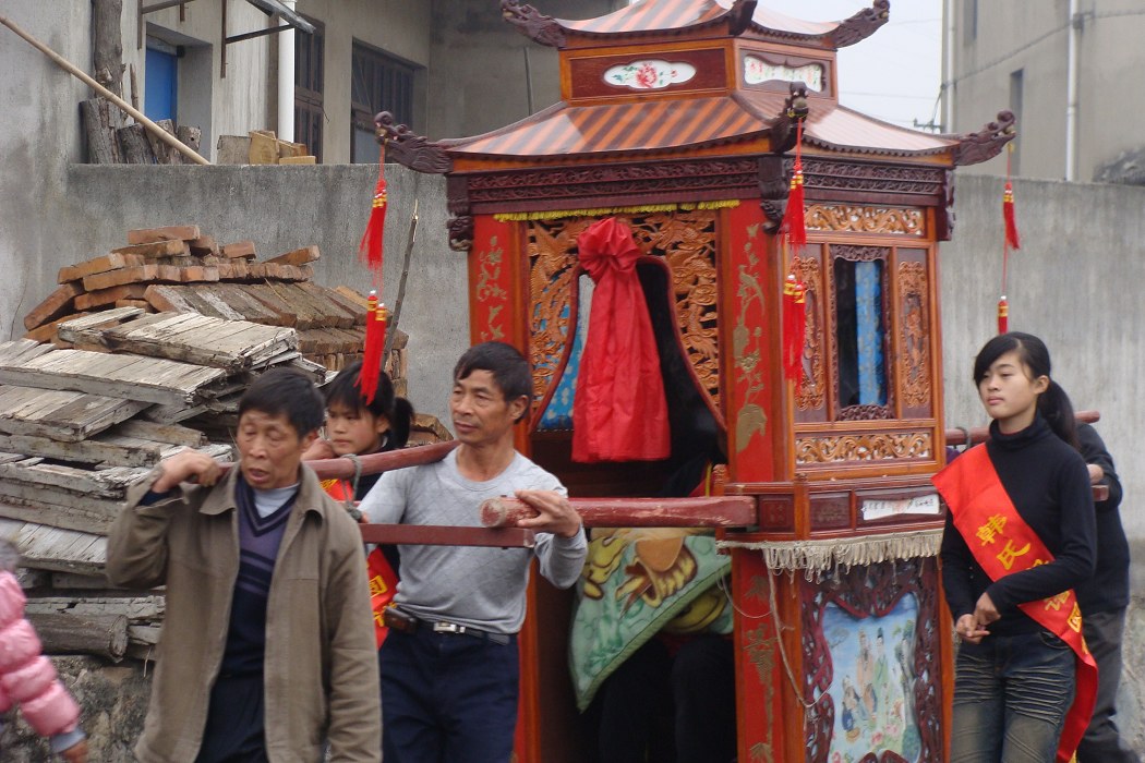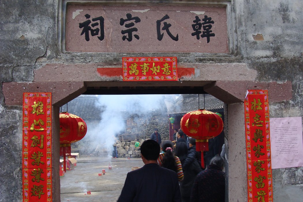 窥视坐在轿内被最年长的长者怀抱着的刚出生的韩氏小生命