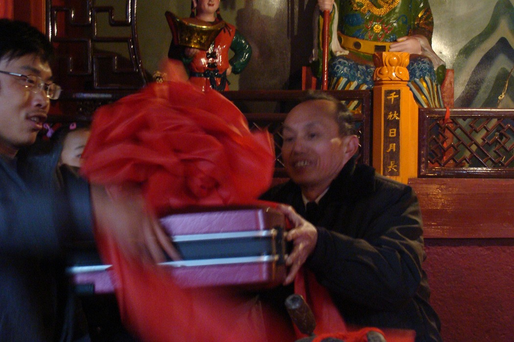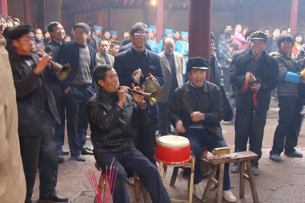 我的亲叔叔鼓起腮帮吹起喜庆的唢呐。