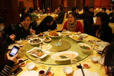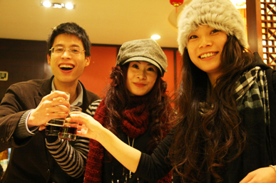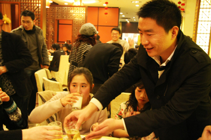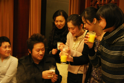 先给美女敬酒?当然了,组织这场聚会不容易,是要犒劳犒劳本小姐,哈哈