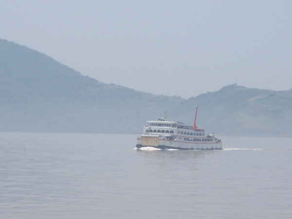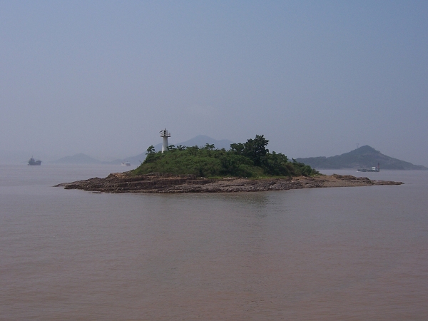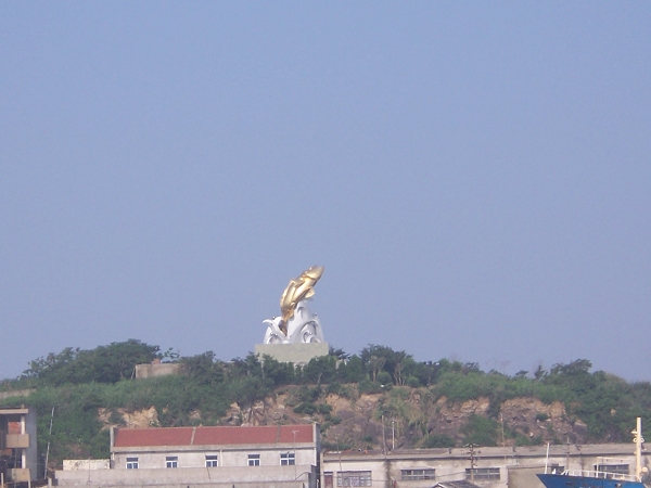 下午3时许,有“蓬莱仙岛”之称的岱山(图四)就在眼前,岸上的大黄鱼雕塑(图五)也看得清清楚楚。[吴成根]
