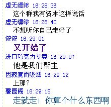 现在我想问下大家,“虚无缥缈”对群做出的贡献可能是很大的!我们要尊敬他,敬重他!但是他就有资格可以不对别人尊重吗?!难道这就是所谓的功高自傲?我很想搞明白的是,这个象山人在杭州的群是他一个人的群还是我们象山人共有的群。