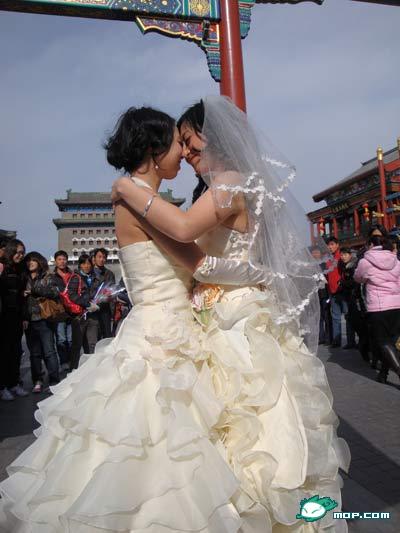 [转贴]惊!实拍情人节当天同性恋在北京前门拍婚纱照(图)