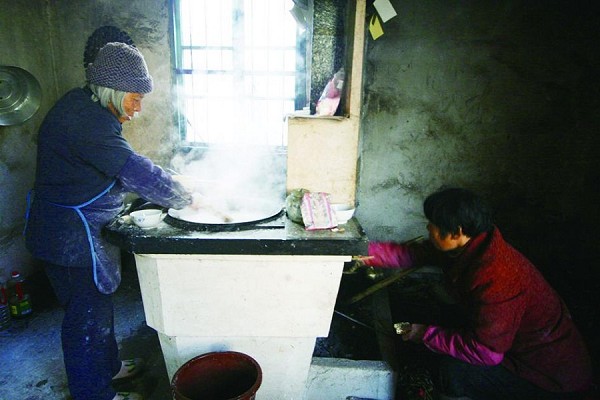 一位精神矍铄的老人在灶台边做着番薯浆,她是励安花的母亲郭老太。邻居告诉我,郭老太从8岁开始就学做冬面,已经做了70年了。励安花的冬面技术是从母亲那学来的,她也已做冬面30多年,对她们而言做冬面是一种快乐。