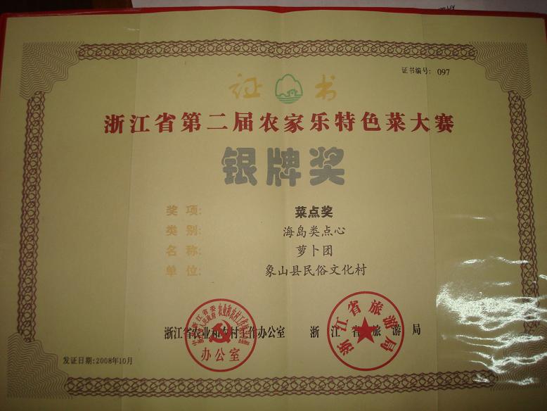 象山县茅洋民俗文化村在本次大赛中获得:银奖----点心类萝卜图